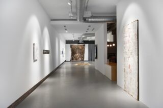 This presentation of new.now. conjures the feeling of moving through, and reaching toward. Each artist’s work begins to take on an almost fugitive character—at once urgent and hopeful. Fragments of childhood memories surface through oil pastels, wild clay, and colored pencils; glimmers of futurity flicker in moving images and plaster casts; portals of stained glass and collaged tunnels signal a way to go on, while the murkiness of mud-covered canvas and night skies leave destination and distance undetermined. While there is no telling where we will land—certainly nothing will remain the same.